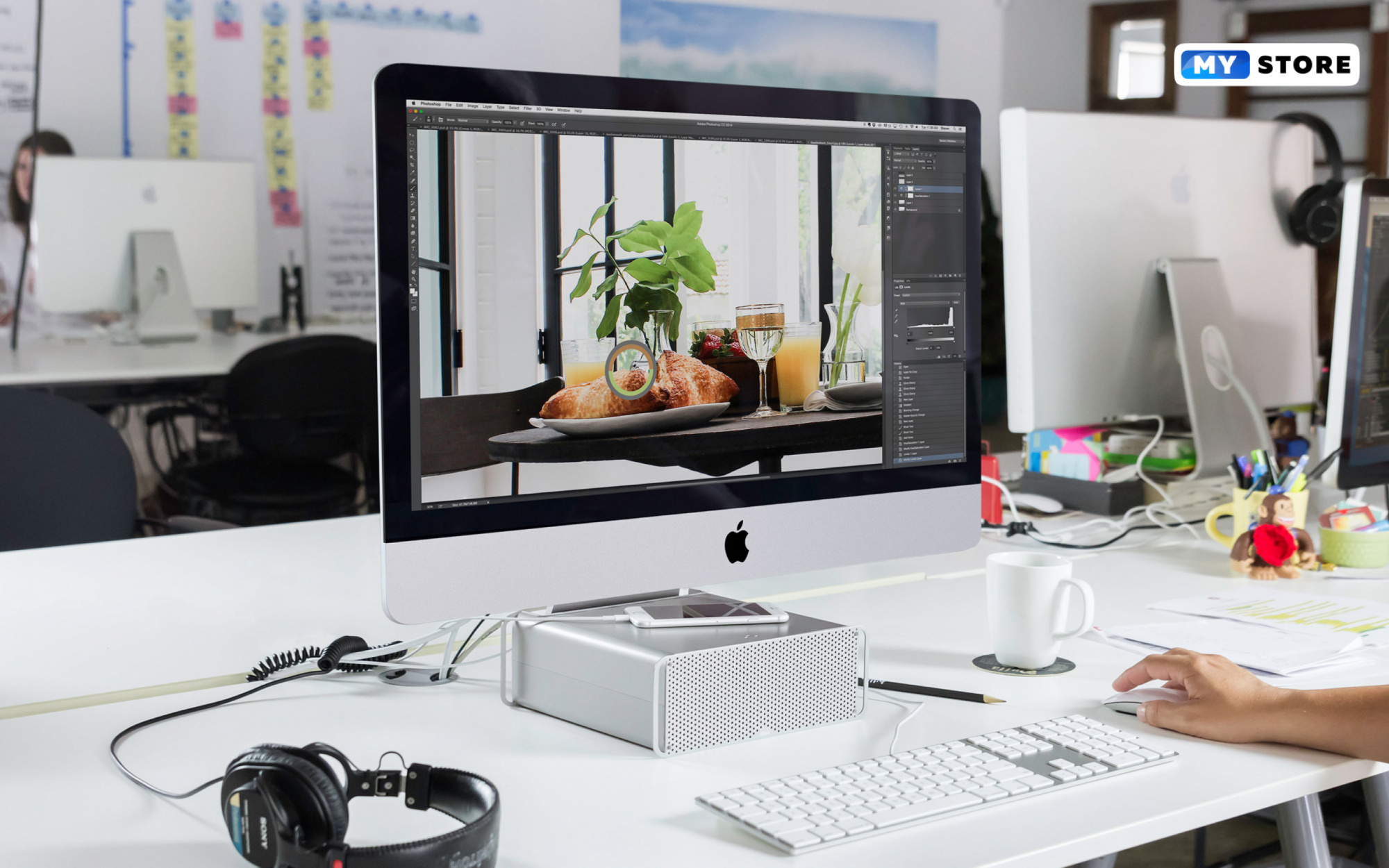 iMac 27’’ обладает мощным процессором, быстрой графикой, большим объёмом памяти и прекрасным дисплеем, что позволяет компьютеру легко справляться с разными задачами (работа в фотошопе, работа с текстовыми файлами, работа в интернете, работы с графическими программами и пр.).