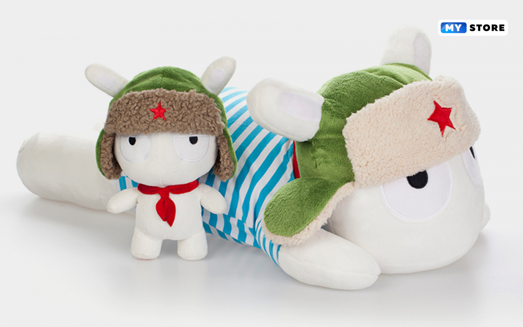 Представляет собой игрушку в виде белого кролика, на ушанке которого расположена звезда, а на груди красный галстук. Игрушки мягкие и приятные на ощупь, изготовлены из лавсана (наполнитель 100% полиэстер). Высота кроликов приблизительно 25 см.