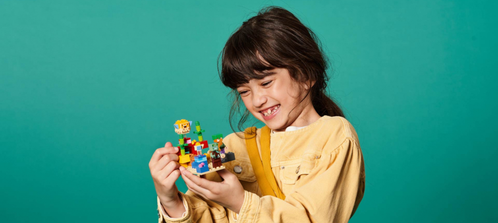 Перенеси действия игроков Minecraft ™ в реальный мир с помощью этого бесконечно перестраиваемого приключения из кубиков LEGO®.