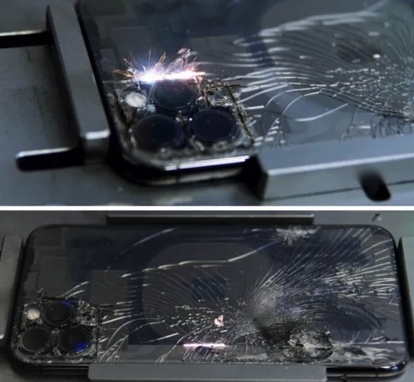 - Корпус айфона 11 Pro Max пострадал при падении или сильном ударе.