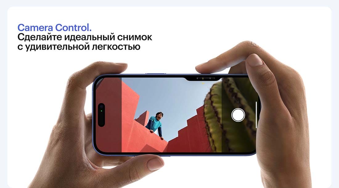 iPhone 16 получил новую сенсорную кнопку для быстрого доступа к камере, расположенную в нижней части корпуса и удобную для нажатия большим пальцем. Эта кнопка позволяет быстрее делать снимки и более комфортно управлять настройками съёмки.