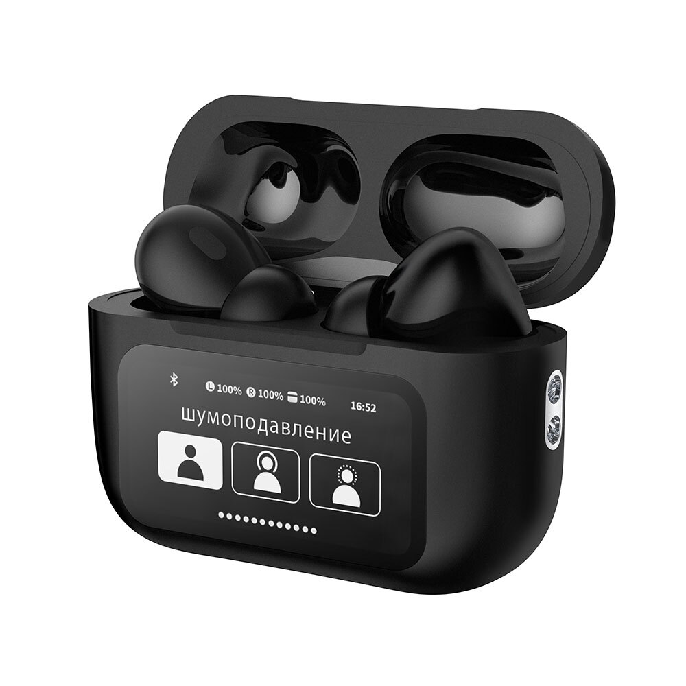 Наушники с сенсорным экраном предлагают интуитивно понятное управление музыкой, громкостью и эквалайзером. Современный дизайн сочетает в себе стиль и высокую функциональность, включая такие полезные функции, как таймер, управление шумоподавлением, регулировка яркости, выбор языка и возможность поиска наушников.